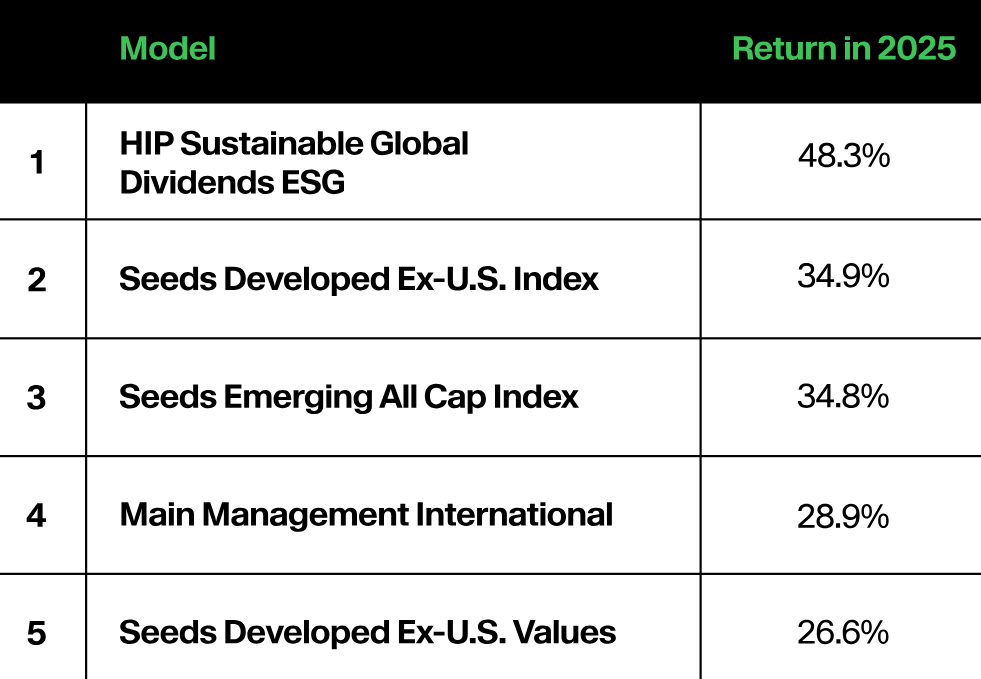 These figures are shown net of underlying model fees and expenses. Past performance is not indicative of future results.